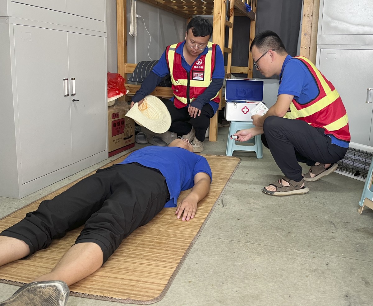 在演練現(xiàn)場(chǎng)分管中層詳細(xì)介紹了此次演練開展的意義和目的,講述了高溫工作中暑前的預(yù)防和中暑后的處置措施,并部署了演練過程中的人員分工。隨后,開展模擬了高溫天氣室外作業(yè)出現(xiàn)中暑昏厥的救治現(xiàn)場(chǎng)實(shí)操演練。
