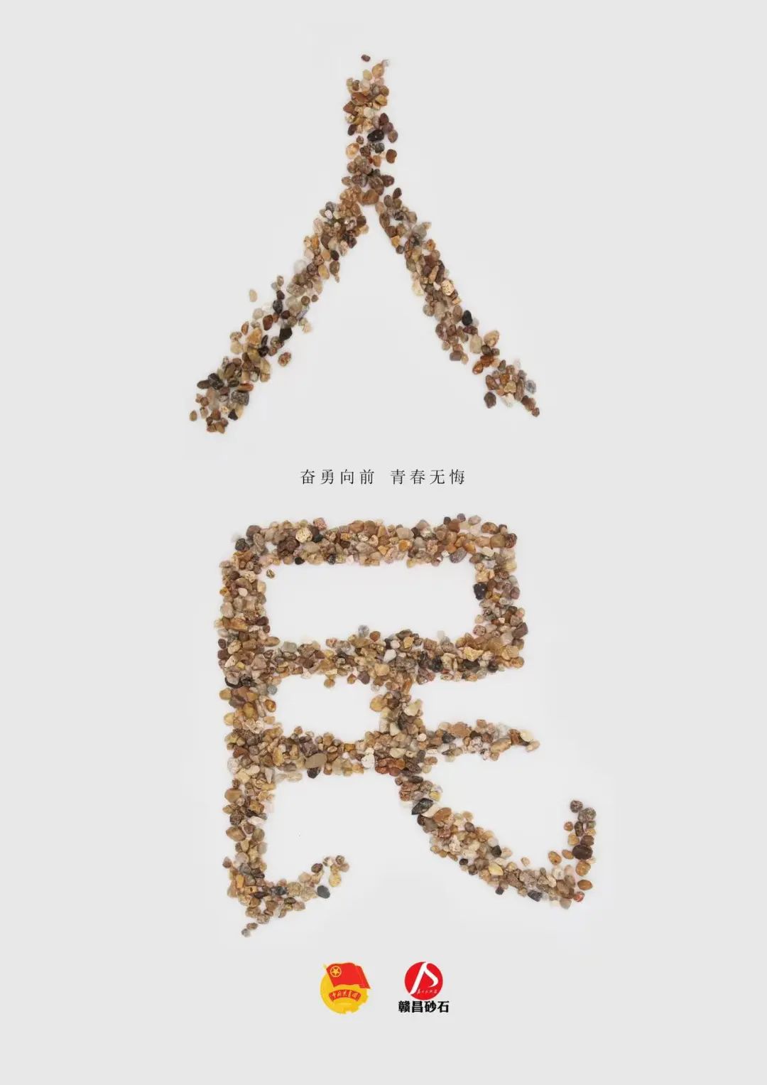 作品解讀:“青春夢想 服務(wù)人民”系列作品是使用贛昌砂石公司四種不同的砂石衍生產(chǎn)品,組成文字,蘊含著砂石公司砂石產(chǎn)品始終堅持服務(wù)為民的宗旨,也蘊含著年輕的砂石公司為了發(fā)展的砂石夢想。