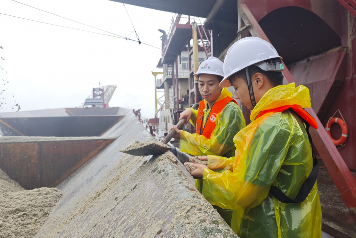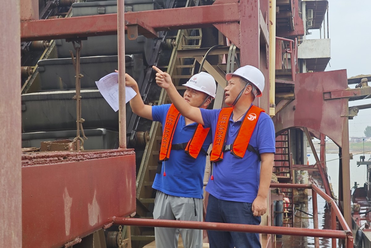 “目前下游引航道還有多少高程不到位的?這個(gè)區(qū)域每天都在開(kāi)采,最近都有雷陣雨,天氣炎熱且多變,大家要特別注意設(shè)備及人員安全...”贛南昌采0186船上,鐘華正在給員工布置工作。贛撫尾閭航道疏浚工程項(xiàng)目時(shí)間緊,任務(wù)重,為確保贛撫尾閭航道疏浚工程順利推進(jìn),他與員工同吃同住,白天他除了與相關(guān)單位對(duì)接工程進(jìn)度,就是在堤岸邊巡查,開(kāi)采過(guò)程中如遇問(wèn)題,他會(huì)立即趕到現(xiàn)場(chǎng)解決,為了不耽誤工作,晚上他與員工一起住在駐地值班地點(diǎn),截至8月26日,他已在一線奮戰(zhàn)20多天沒(méi)有回過(guò)家。