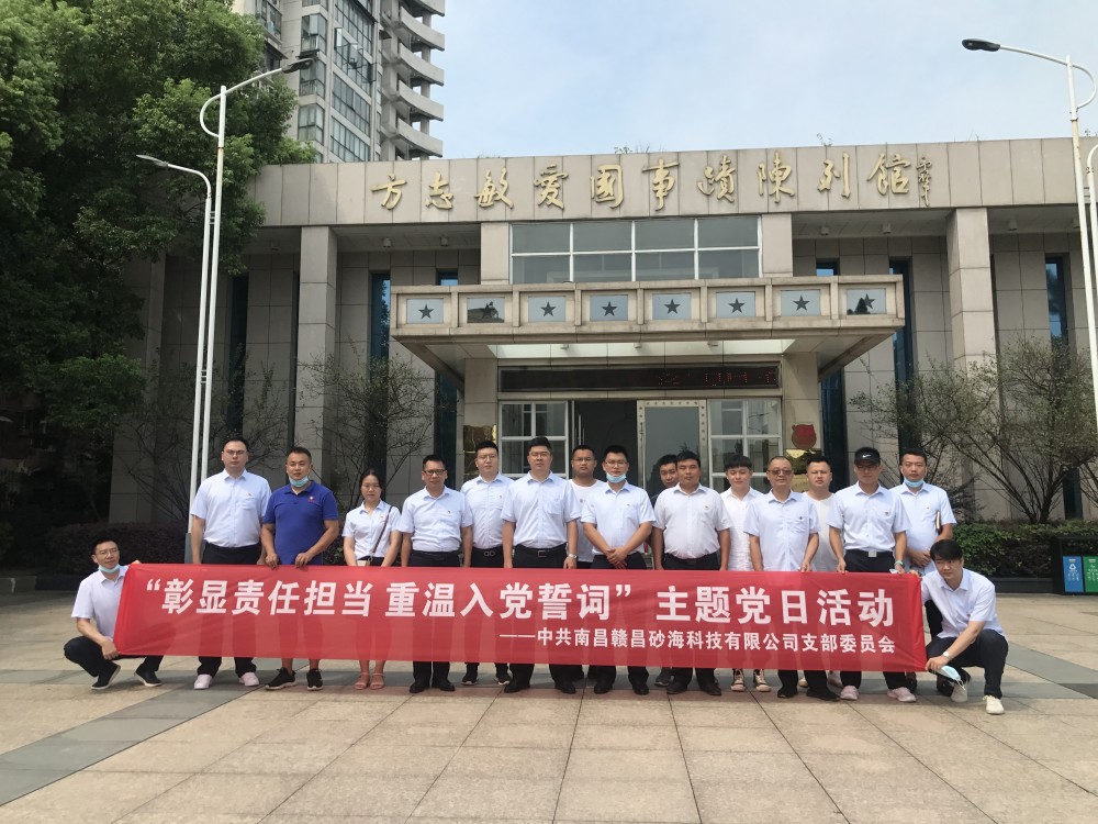 7月29日上午,南昌贛昌砂海科技有限公司黨支部組織全體黨員通過“線上+線下”模式在公司黨員活動室及方志敏愛國事跡陳列館,開展了以“彰顯責任擔當 重溫入黨誓詞”為主題的黨日活動,支部全體黨員參加,活動由支部臨時負責人熊澄主持。