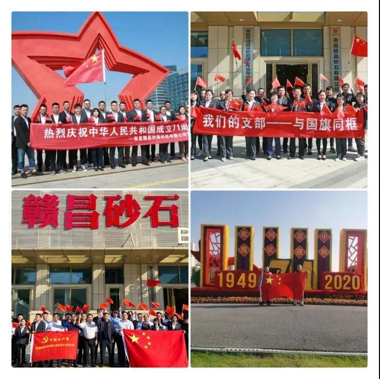 為熱烈慶祝新中國成立71周年,回顧光輝歷程、偉大成就和寶貴經(jīng)驗,激勵廣大黨員弘揚愛國主義精神,厚植愛國主義情懷,展現(xiàn)新時代黨組織和黨員的良好風貌,切實把愛國熱情轉(zhuǎn)化為公司發(fā)展的強大動力,根據(jù)南昌市委組織部發(fā)布的“2020年10月主題黨日活動指導要求”和集團相關(guān)文件要求,10月9日,南昌贛昌砂石有限公司各黨支部開展了“我與國旗同框,我向祖國表白”主題黨日活動。