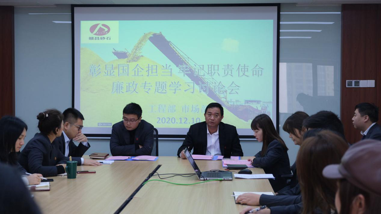 12月10日,贛昌砂石公司工程部、市場部聯(lián)合組織開展了《彰顯國企擔(dān)當(dāng) 牢記職責(zé)使命》的廉政教育專題討論會。