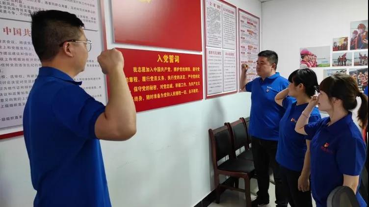 隨后,在熊志及其他參會的正式黨員的見證下,陳希、黃露、唐金紅3位同志進行入黨宣誓。宣誓過后,熊志同志帶領全體參會黨員重溫入黨誓詞,經(jīng)營分公司黨支部全體黨員舉起的右拳,是我們肩負起的重擔,口中的誓詞是我們決心的見證,堅定的眼神是我們忠誠的彰顯,不忘初心,牢記在黨旗下錚錚誓言的執(zhí)著與堅定,同時經(jīng)營黨支部全體黨員參與了建黨100周年慶生的活動,也為6月份過政治生日的3名同志分別贈送了政治生日賀卡。