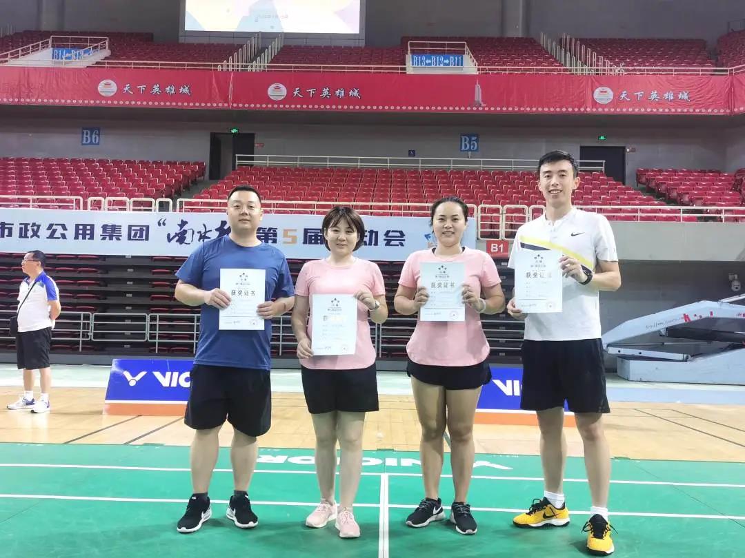 7月13日,團體賽正式開賽,對手分別是集團總部、工程項目公司、幸福渠公司,我方派出的陣容是混合雙打選手公司工會主席、總經(jīng)理助理胡蓉及新建區(qū)分公司劉濤,女單選手工會施琳茹,男單選手配送服務(wù)中心趙通,團體賽采用三局兩勝,經(jīng)過多輪廝殺,我司以小組第一的成績挺進八強,八強賽首輪對手就是集團頭號種子選手劉迪帶領(lǐng)的燚之聯(lián)隊,最終取得團體賽第七名。