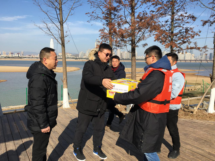 1月8日上午,生產(chǎn)部負(fù)責(zé)人熊志、新建區(qū)分公司(新贛開采部)負(fù)責(zé)人鐘華、安保部負(fù)責(zé)人朱定國代表公司前往青云取水口慰問奮戰(zhàn)在清淤一線的員工。