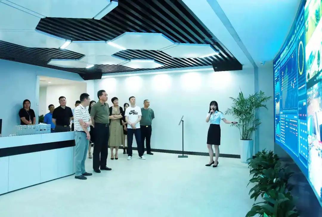 鄧建新一行參觀了贛昌砂石公司辦公大樓,并在監(jiān)控指揮中心通過(guò)監(jiān)控視頻視察了一線生產(chǎn)經(jīng)營(yíng)情況,詳細(xì)地了解了砂石出庫(kù)流程。