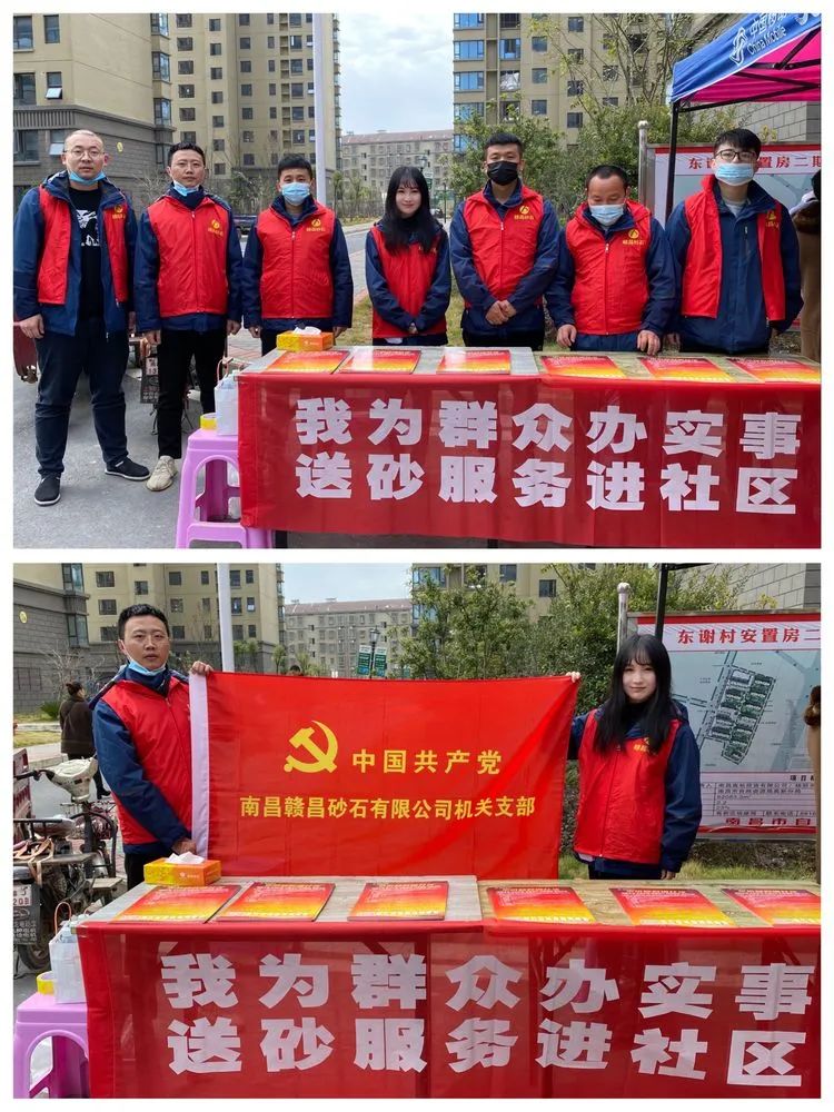 為認(rèn)真貫徹落實省市紀(jì)委關(guān)于集中整治群眾身邊腐敗和不正之風(fēng)突出問題的相關(guān)要求,進(jìn)一步提升窗口服務(wù)單位服務(wù)質(zhì)量,同時讓更多的市民了解和享受到“平價砂石進(jìn)社區(qū)”這項惠民工程帶來的福利,11月24日上午,南昌贛昌砂石有限公司紀(jì)委聯(lián)合贛昌砂石公司機(jī)關(guān)黨支部、配送服務(wù)中心前往南昌高新開發(fā)區(qū)瑤湖東謝小區(qū)開展“我為群眾辦實事,送砂服務(wù)進(jìn)社區(qū)”宣傳活動。