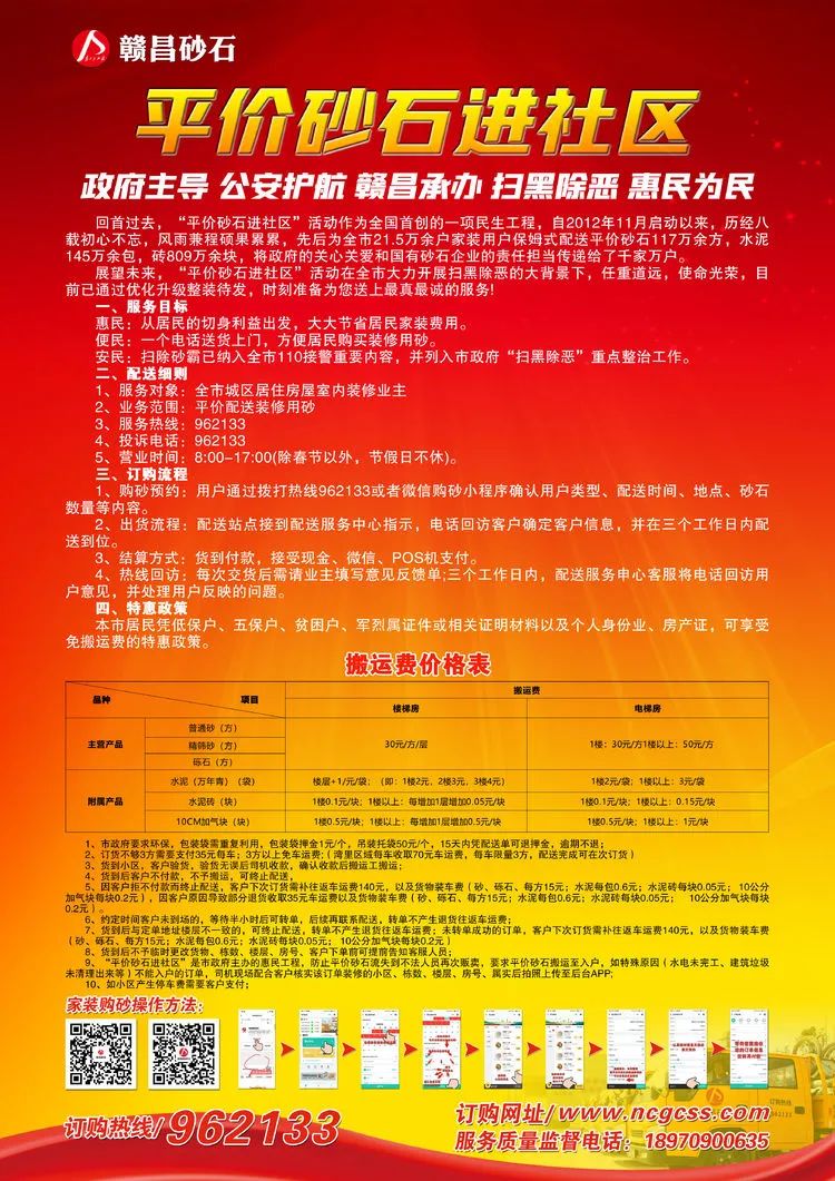 活動現(xiàn)場,工作人員向小區(qū)居民發(fā)放“平價砂石進(jìn)社區(qū)”活動宣傳單頁,結(jié)合宣傳單頁向小區(qū)居民介紹平價砂石產(chǎn)品種類和價格、配送方式、訂購熱線等內(nèi)容,引導(dǎo)居民通過手機(jī)微信端關(guān)注“南昌贛昌砂石”微信公眾號,實現(xiàn)動動手指即可線上購砂。同時提醒廣大居民在購砂過程中遇到服務(wù)不滿意或質(zhì)量不合格等情況時,可以撥打公司紀(jì)委的服務(wù)質(zhì)量監(jiān)督電話進(jìn)行投訴反饋。
