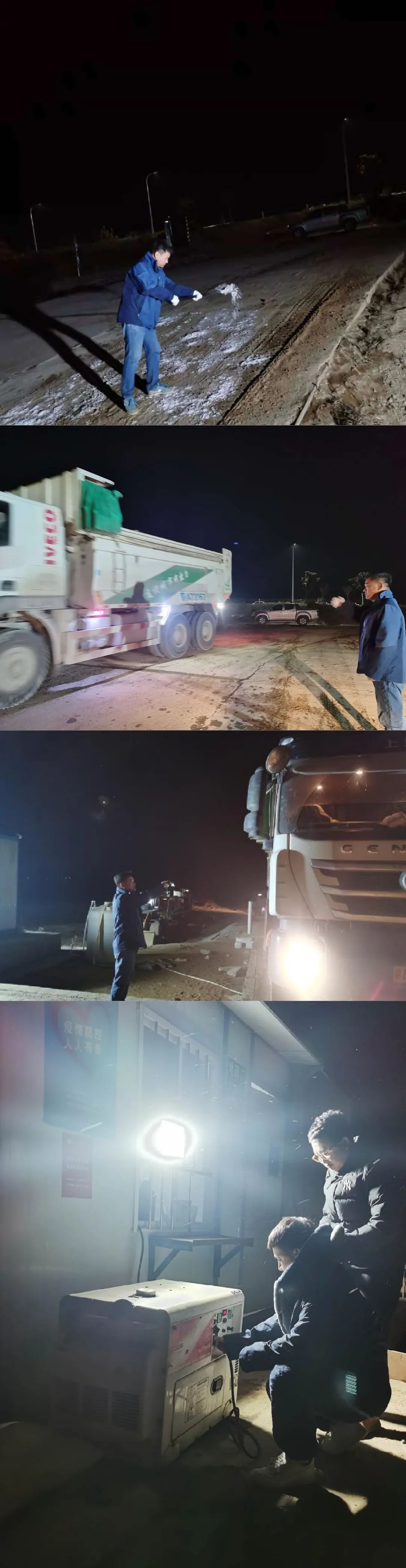 高新片區(qū)中層干部帶領(lǐng)各砂場(chǎng)值班人員對(duì)砂場(chǎng)進(jìn)出口進(jìn)行排查,確認(rèn)砂場(chǎng)及周邊積水情況,并在車輛行駛道路進(jìn)行了撒鹽防滑措施,防止道路結(jié)冰,防范車輛、人員進(jìn)出等安全隱患。
