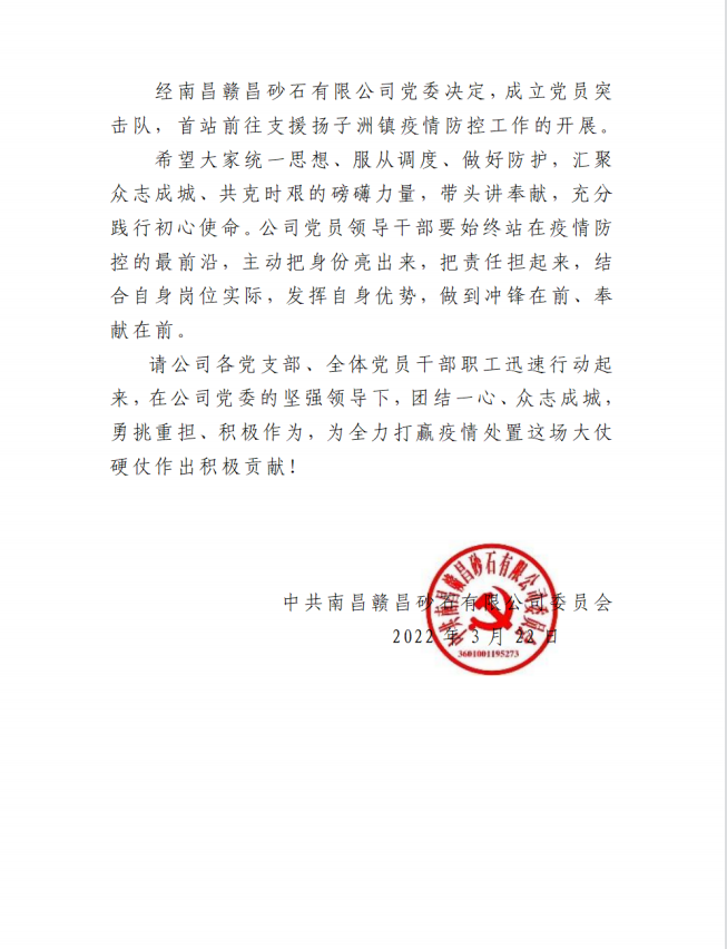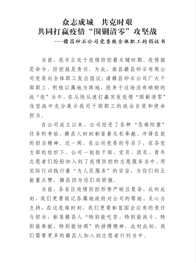 贛昌砂石公司黨委 | 致全體職工的倡議書