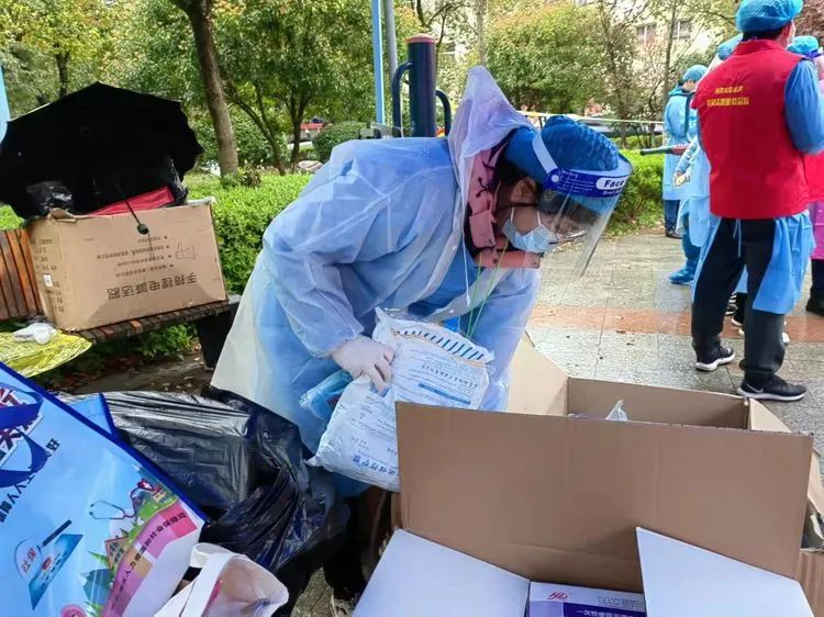 由于需要反復全員核酸檢測就意味著需要登記記錄每一戶每一個人的個人信息,并將試管掃碼打包,那么志愿者的工作除了考驗志愿者的耐心,也考驗自己的體力以及安排能力。在進行這些工作時,我們不能身著自己輕便的衣服,而是要換上厚重的防護服,一站就是一天,或幫忙維護一下秩序,或調(diào)控一下排隊的間隔,或補充咽拭子檢測試劑和手部消毒液,或做個人員引導員,或采集人員信息,或貼下樣品標簽等。我們都在為這個城市的平安喜樂付出這樣或那樣的努力,希望能以自己的實際行動來守護我們的家鄉(xiāng)。