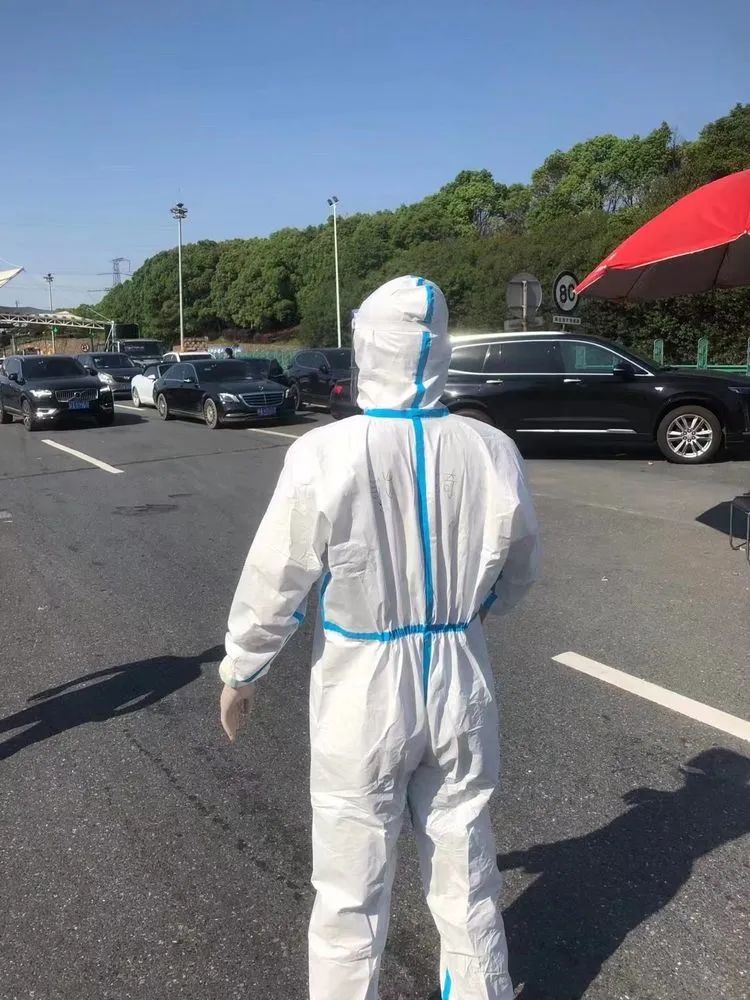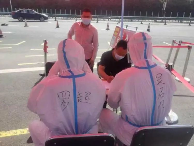 隨著微信群中的消息閃爍,13:53“已到達集合地點”、13:57“已到達集合地點”、13:59“已到達集合地點”、14:00“從進賢出發(fā),正在路上”。大家以最快的速度從各處趕來集結(jié),隨后便在現(xiàn)場工作人員的指導(dǎo)下,熟悉收費口出入政策要求,并“全副武裝”換上了“大白”防疫服。