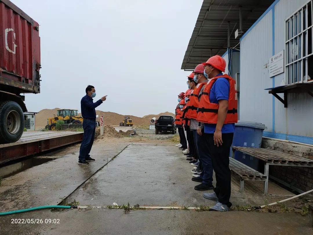此次演練參照《東新片區(qū)砂場防汛應(yīng)急預(yù)案》執(zhí)行,模擬砂場水位到達(dá)警戒線后,如何快速有效的轉(zhuǎn)移砂場重要物資以及保障砂場人員有序安全撤離,東新片區(qū)副經(jīng)理萬長征,現(xiàn)場講解了此次防汛應(yīng)急演練的目的,過程以及人員分工。