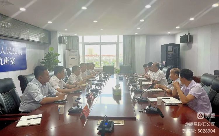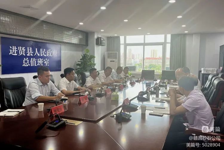 7月18日下午,南昌贛昌砂石有限公司總經(jīng)理陳鴻一行赴進(jìn)賢縣洽談采砂工作推進(jìn)事宜。公司總經(jīng)理助理蔡安煜及進(jìn)賢縣分公司、贛昌砂海子公司、財(cái)務(wù)部、企業(yè)管理部、配送服務(wù)中心相關(guān)人員一同前往。進(jìn)賢縣政府副縣長(zhǎng)吳寬攜縣政府辦公室、縣商務(wù)局、縣水利局、縣自然資源局、縣創(chuàng)投集團(tuán)等有關(guān)同志熱情接洽并組織座談交流。
