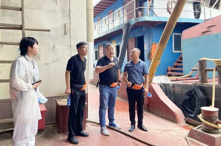 7月28日,蔡安煜一行趕赴湖南省岳陽市湘陰縣湘資砂石資源有限公司考察交流。抵達該公司采區(qū)作業(yè)現(xiàn)場后,在湖南洞庭湖資源控股集團有限公司副總經(jīng)理鐘浩、湘陰縣湘資砂石資源有限公司總經(jīng)理胡鵬的帶領(lǐng)下,蔡安煜一行登船參觀了采區(qū)砂石生產(chǎn)作業(yè)情況。