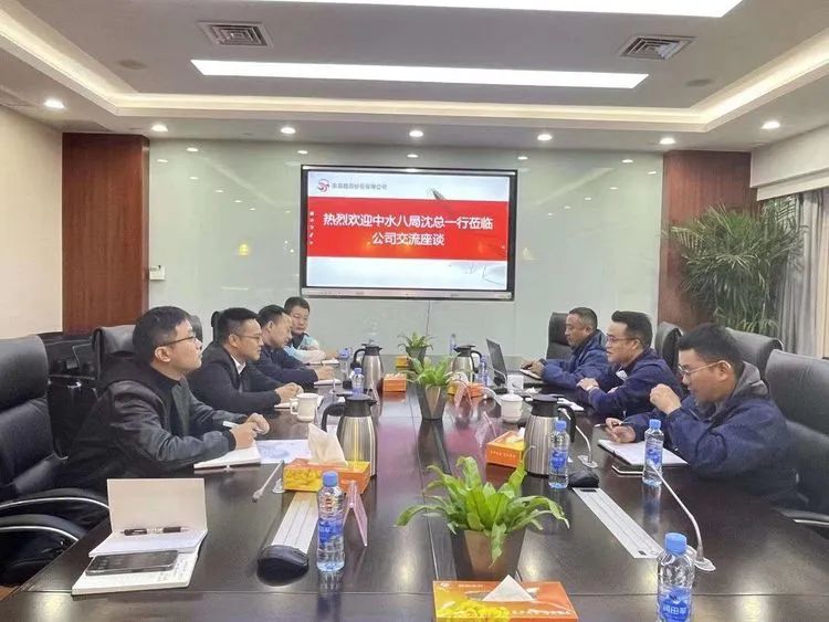 11月15日上午,中國水利水電第八工程局-贛江下游尾閭綜合整治工程設(shè)計、采購、施工總承包項目部總經(jīng)濟師沈偉一行來到南昌贛昌砂石有限公司進行交流座談,贛昌砂石公司黨委書記、董事長唐曉飛,副總經(jīng)理張軍茂、胡蓉及市場部、砂方開挖部相關(guān)人員參加座談會。