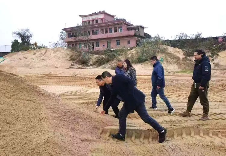 隨后,唐曉飛一行進入砂場囤砂點查看目前場內(nèi)砂石的囤儲情況。經(jīng)開營業(yè)部負責人熊明就砂場相關(guān)工作進行了簡要匯報。