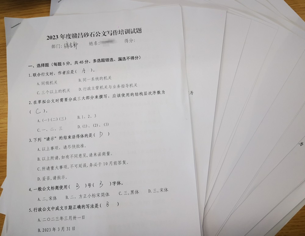 會(huì)后,參訓(xùn)人員進(jìn)行了試卷答題,以檢驗(yàn)大家的培訓(xùn)效果。
