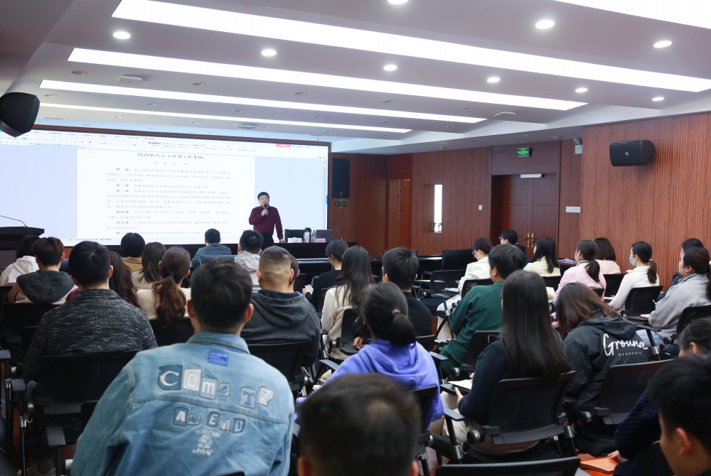 培訓(xùn)會(huì)上,李德平結(jié)合工作經(jīng)驗(yàn)和實(shí)際案例,從公文概述(定義、特點(diǎn)、作用、類別)、公文寫作程序、公文格式及行文規(guī)則、常用公文寫作格式及方法、公文寫作常見(jiàn)問(wèn)題五個(gè)方面進(jìn)行了全方位、系統(tǒng)性的交流闡述。講解方式深入淺出、生動(dòng)有趣,講解內(nèi)容全面客觀、實(shí)用性強(qiáng)。