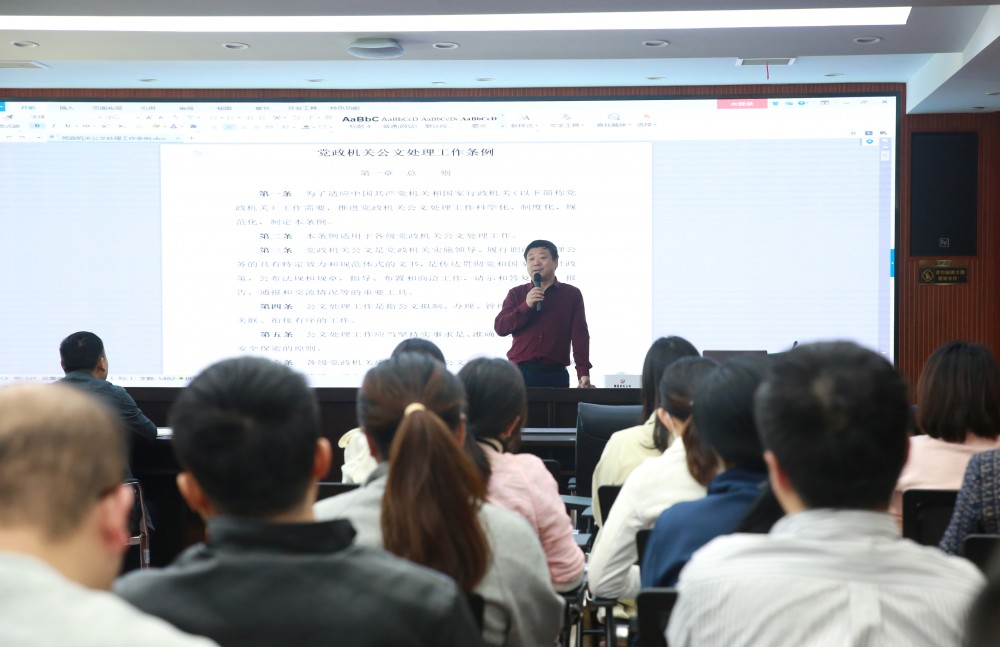 為深入貫徹落實(shí)《黨政機(jī)關(guān)公文處理工作條例》,切實(shí)提高公司員工公文寫作水平,4月26日下午,贛昌砂石公司組織舉辦了公文寫作培訓(xùn)活動(dòng),特邀南昌市政府辦公室四級(jí)調(diào)研員李德平進(jìn)行授課。各公司、各部門60余人參加培訓(xùn)。