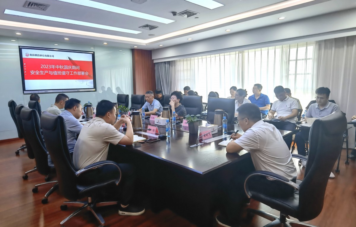 為進(jìn)一步貫徹落實(shí)省、市、交投集團(tuán)最新指示精神,全力做好中秋國(guó)慶期間公司安全生產(chǎn)與值班值守工作。9月28日下午,贛昌砂石公司組織召開(kāi)2023年中秋國(guó)慶期間安全生產(chǎn)與值班值守工作部署會(huì)。公司黨委書(shū)記、董事長(zhǎng)唐曉飛出席會(huì)議并講話,公司班子成員,各公司、各部門(mén)負(fù)責(zé)人參加會(huì)議,會(huì)議由公司黨委副書(shū)記、總經(jīng)理李驍主持。