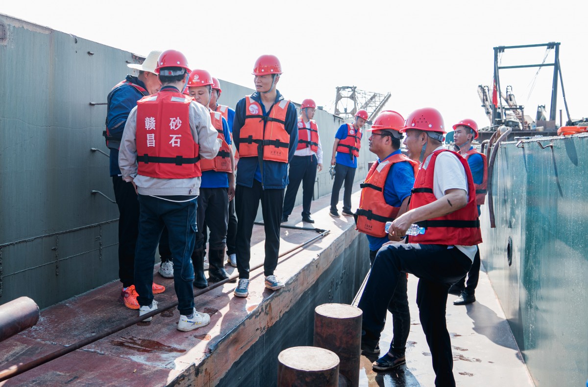 比賽開始后,參賽選手依次穿戴好救生衣、安全帽等安全防護(hù)用具,他們手持測量工具,憑借著日常工作經(jīng)驗(yàn),熟練地進(jìn)行測量工作,他們身手敏捷,動作規(guī)范,測量手法干凈利落,充分發(fā)揮出自己的最佳狀態(tài)。經(jīng)過激烈的比賽,最終,開采管理中心獲得第一名,砂??萍脊精@得第二名,進(jìn)賢縣分公司獲得第三名。