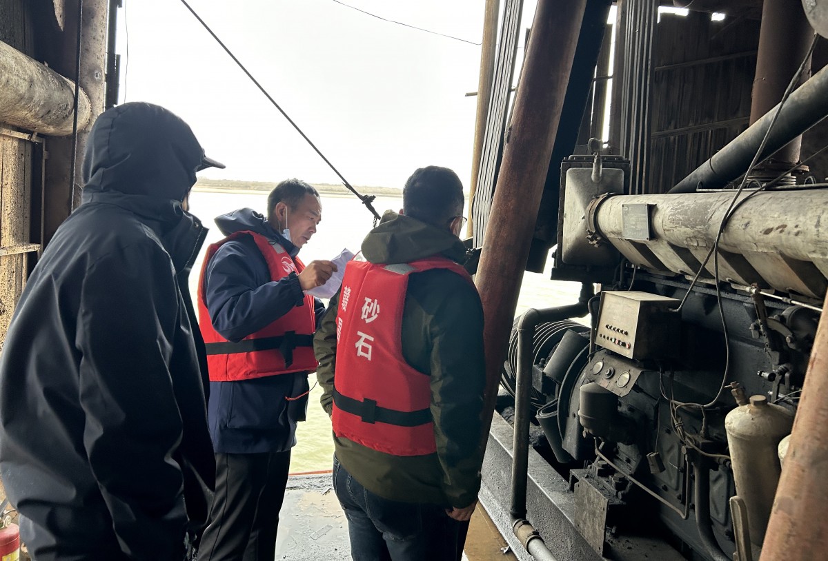 為全面掌握采砂船舶(機(jī)具)管理和船證信息,進(jìn)一步加強(qiáng)采砂船數(shù)量及分布情況,12月15日,南昌市水利局法規(guī)科科長付建國、高工鄒節(jié)慶,市交通局港航大隊(duì)船舶檢驗(yàn)科副科長占淼,市采砂辦督察部部長熊長清,市水政支隊(duì)河道大隊(duì)長王偉一行在贛昌砂石公司副總經(jīng)理張軍茂及前期部、開采管理中心相關(guān)人員的陪同下對贛江流域采砂船舶(機(jī)具)進(jìn)行實(shí)地摸底核查。