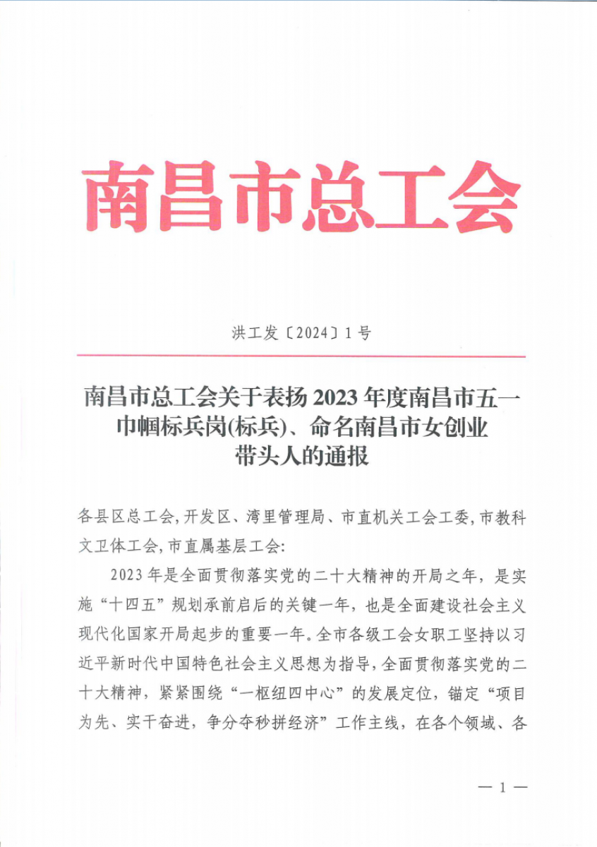 近日,南昌市總工會印發(fā)《南昌市總工會關(guān)于表揚2023年度南昌市五一巾幗標兵崗(標兵)、命名南昌市女創(chuàng)業(yè)帶頭人的通報》,其中,贛昌砂石公司配送客服崗獲得“南昌市五一巾幗標兵崗”榮譽稱號!