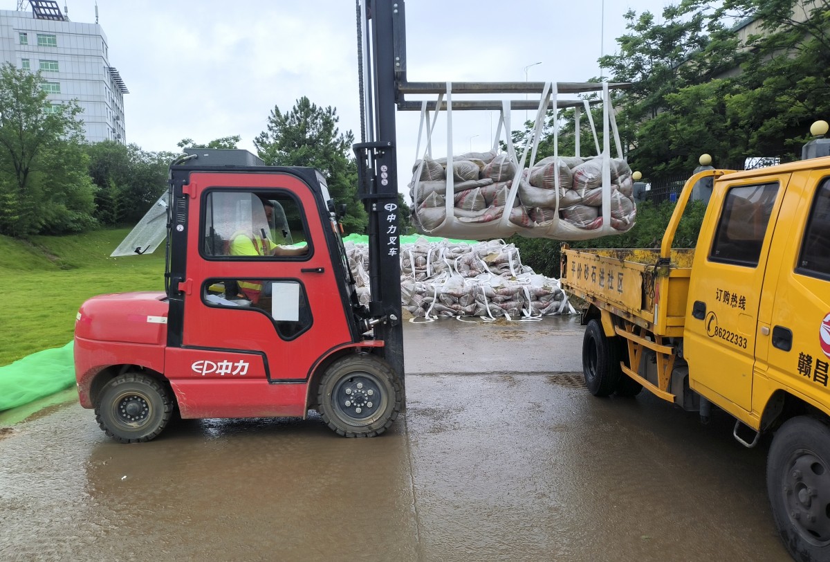 隨著贛江水位持續(xù)上漲,經(jīng)開區(qū)配送站現(xiàn)場(chǎng)被淹沒,無法正常生產(chǎn)作業(yè),結(jié)合往年經(jīng)驗(yàn),贛昌砂石公司配送惠民中心負(fù)責(zé)人熊明提前部署,在汛期前組織站點(diǎn)人員加班加點(diǎn)將砂石裝袋,并轉(zhuǎn)運(yùn)至地勢(shì)高處進(jìn)行儲(chǔ)備,為汛期砂石配送工作不中斷提供了保障。