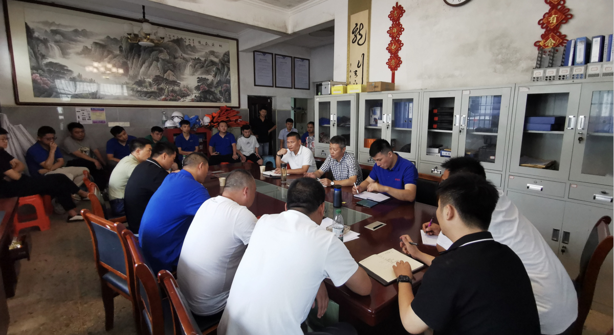7月27日,公司副總經(jīng)理劉捷緊急組織開采管理中心、生產(chǎn)部中層干部及尾閭工作組全體成員召開專題部署會,會上,劉捷提出“高溫不下火線,風(fēng)雨無阻保安全、穩(wěn)生產(chǎn)、搶進度”的工作要求,確保項目工程如期完工;現(xiàn)場制定了由公司領(lǐng)導(dǎo)指揮,中層干部駐一線管理,班長、員工全員上崗的工作方案。