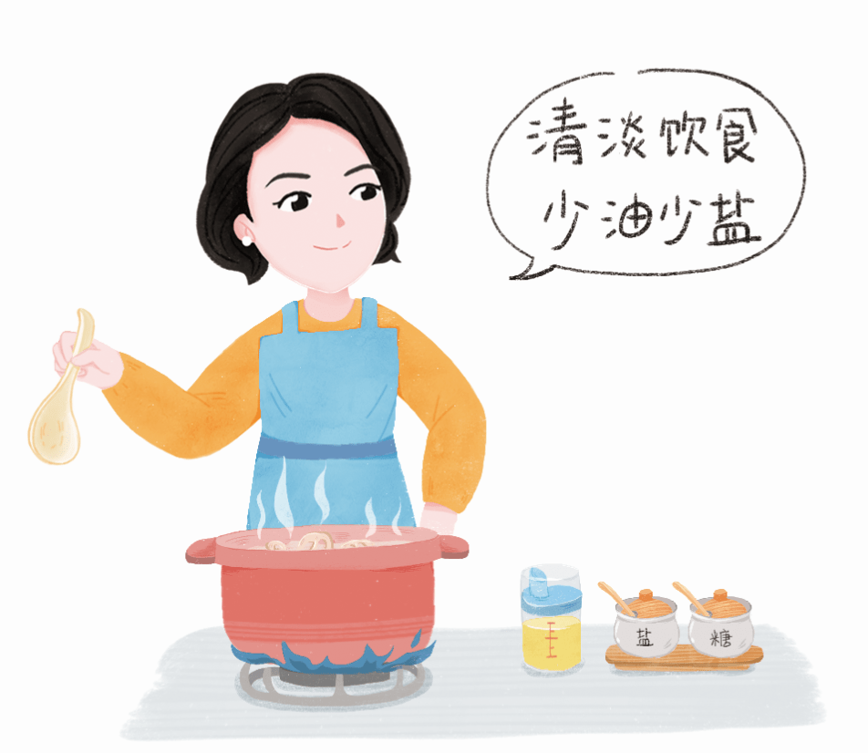 清淡飲食,少油少鹽少糖