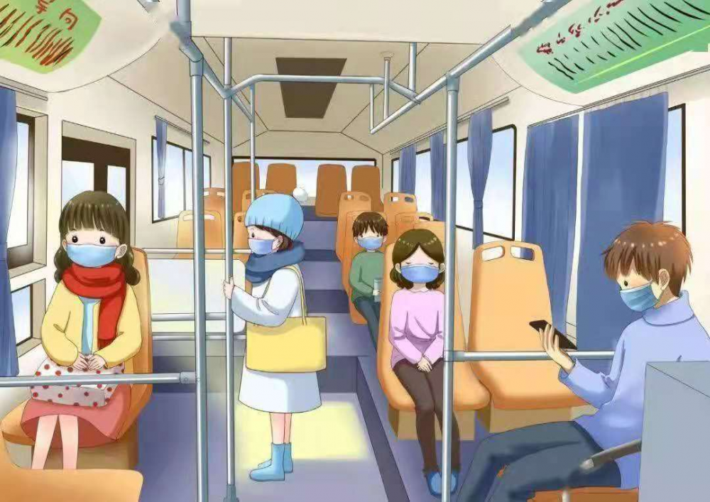 為做好疫情防控工作, 大家乘坐公交車時,必須全程規(guī)范佩戴口罩,做好個人防護措施。