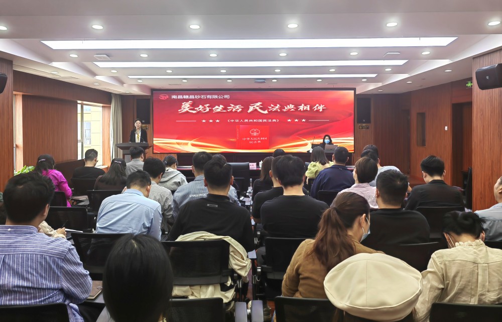 為深入做好《民法典》學(xué)習(xí)宣傳工作,不斷提升廣大干部職工法治素養(yǎng)。2023年5月23日下午,南昌贛昌砂石有限公司開展以“美好生活·民法典相伴”為主題的《民法典》物權(quán)法篇專題培訓(xùn)。培訓(xùn)由公司黨委副書記、常務(wù)副總經(jīng)理朱鳳主持,各部門分管法律宣傳的中層干部及員工參加。此次專題培訓(xùn)特邀江西豫章律師事務(wù)所高級(jí)合伙人、江西省防范金融風(fēng)險(xiǎn)公益宣講團(tuán)專家(省級(jí))、南昌市律師協(xié)會(huì)維權(quán)專委會(huì)副主任、環(huán)資委副主任、南昌大學(xué)科技學(xué)院人文社科部客座教授徐謙為大家授課。